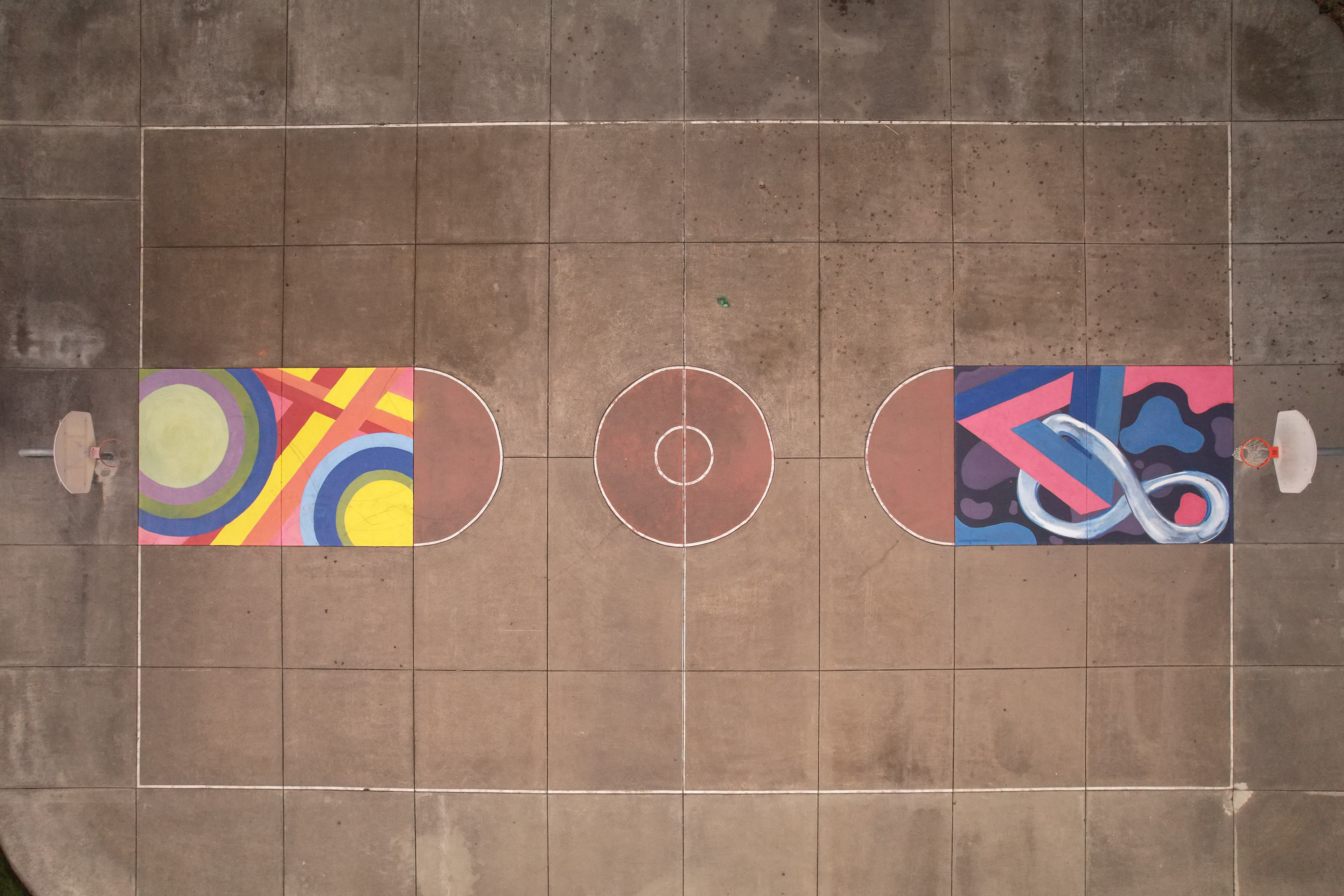 Nothing's Impossible, Acrylic on Concrete, 17' x 21'. | Tic Tac Toe, Acrylic on Concrete, 17' x 21'